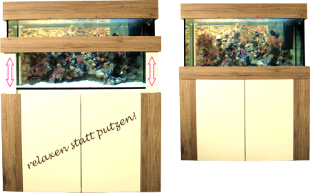 Wir stellen 2014 in Nürnberg auf der Interzoo erstmalig einen Unterschrank aus, der die Aquarienscheiben selbstständig für Sie reinigt.